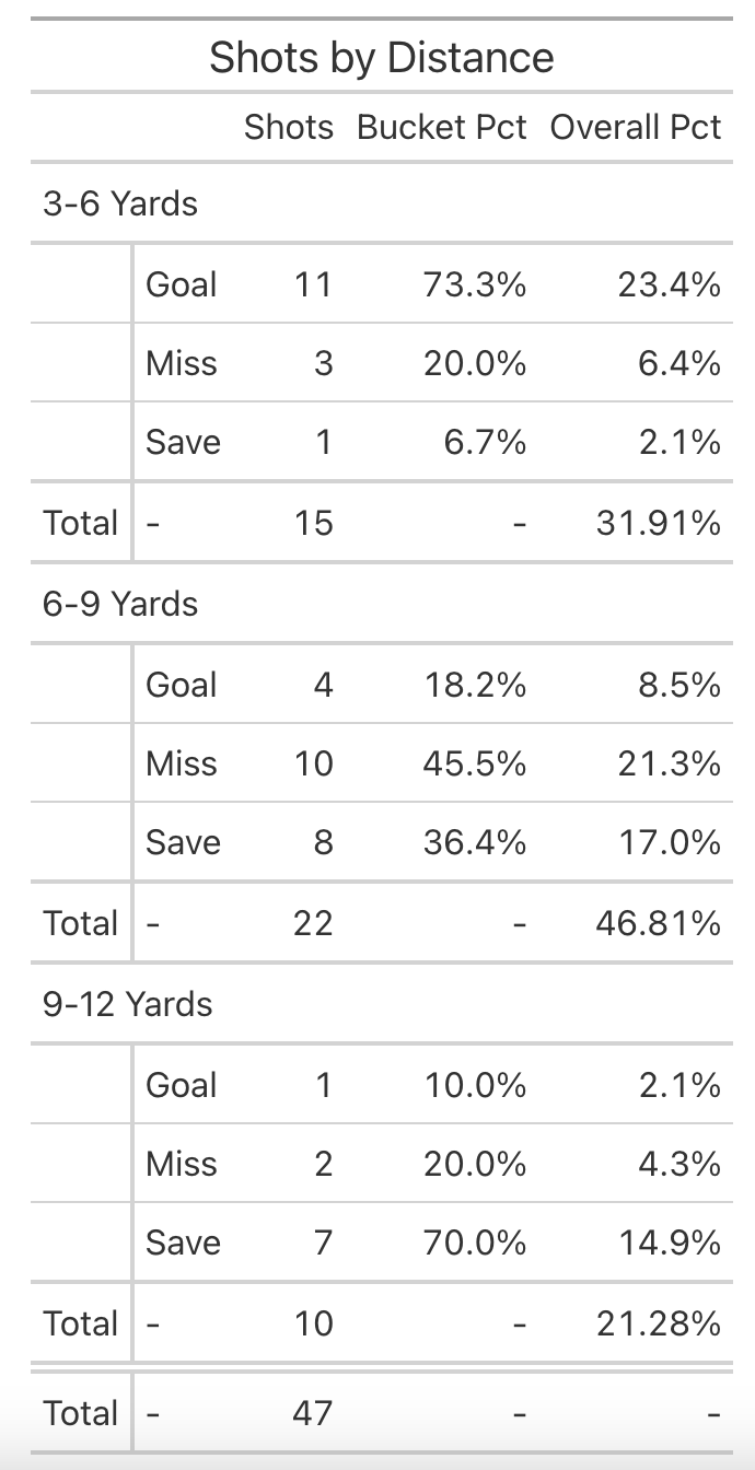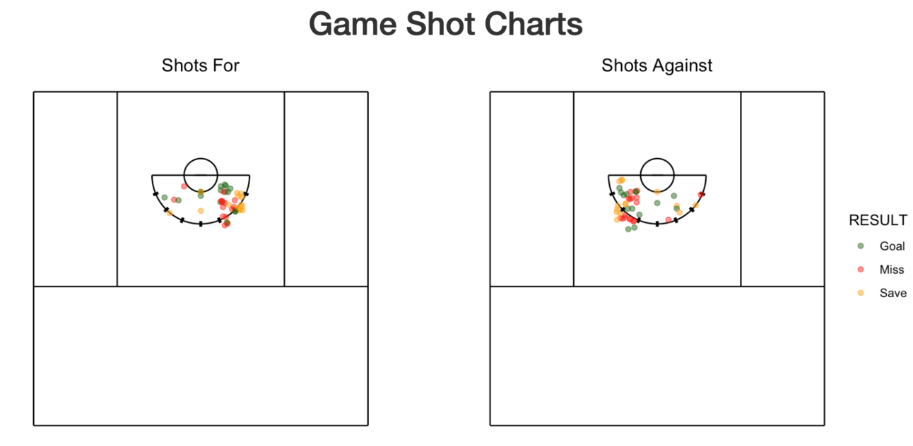 If players are struggling from certain distances, or simply not hitting the coach’s goals on getting shots from distance “buckets”, staffs can adjust practice plans following games and quickly fix low offensive efficiency. Coaches can also identify players who have high shooting percentages in certain game situations to optimize lineup, such as man advantage or 4th quarter. The same problem identification works on the defensive side of the game, where coaches can identify where shots and goals are being allowed the most, and under what circumstances.